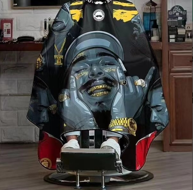 Capa de barbería con diseño moderno y exclusivo, ideal para brindar estilo y protección durante cortes y afeitados. Fabricada en material resistente y ligero, asegura comodidad y durabilidad en cada servicio.