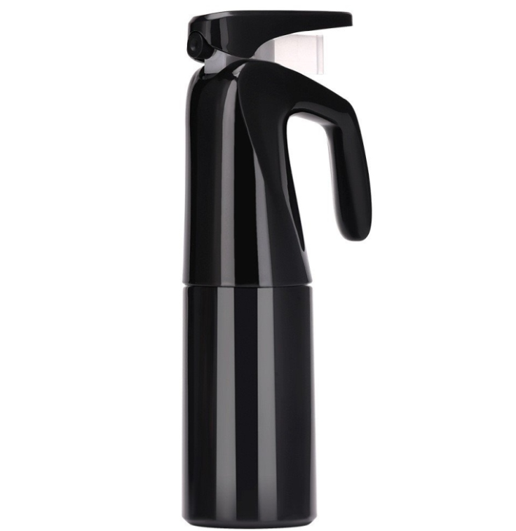 Rociador pulverizador de agua, ideal para humedecer el cabello durante cortes y peinados. Su diseño ergonómico y boquilla ajustable permite un rociado uniforme y preciso, facilitando el trabajo en salones o en casa.