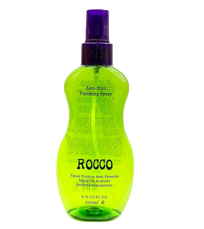 Spray Anti-Frizz Rocco. Controla el encrespamiento, hidrata y protege el cabello, dejándolo suave, manejable y con un brillo natural.